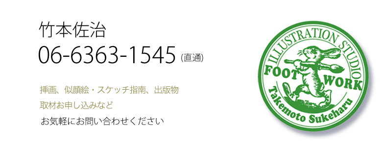 イラストレーター竹本佐治のHPです。自然や街並、人物など多彩な技法で描きます。似顔絵会や速写スケッチ講座も開催!